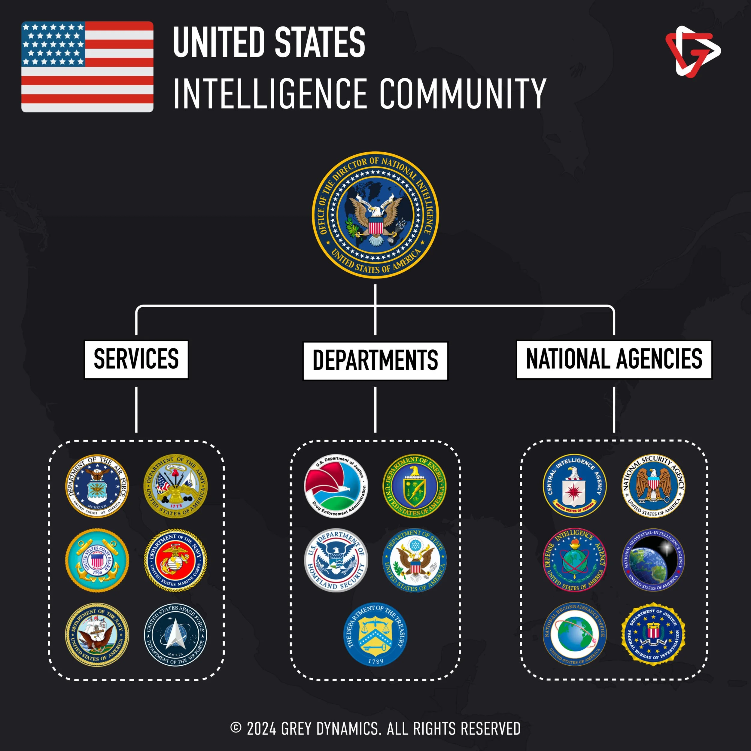 The U.S. Intelligence Community (USIC or just I.C.) mission is to safeguard our interests and national security. The 18 different elements of the I.C. accomplish this by delivering objective, unbiased intelligence to policymakers.